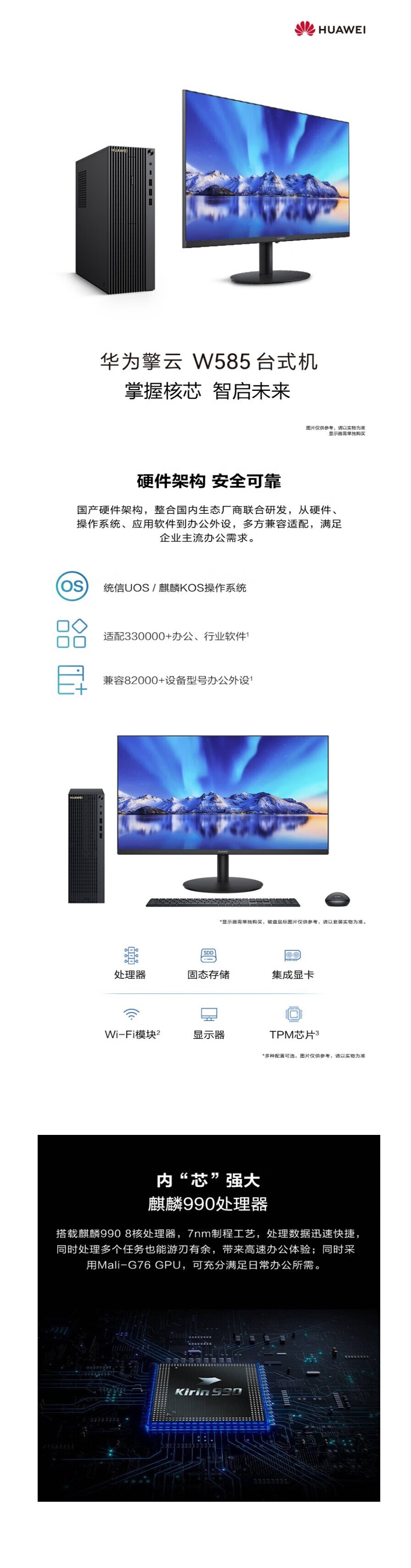 华为 W585x-B036 台式计算机 麒麟9000C/16G/256G+1T/集显/23.8寸